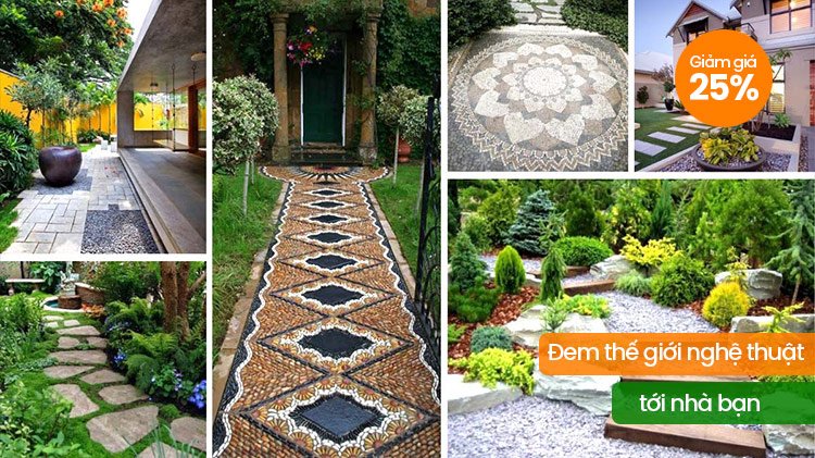 Sỏi đen tự nhiên trang trí lối đi sân vườn cho không gian thêm gần gũi với thiên nhiên